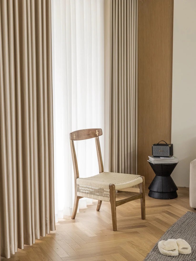 Smooth Silk Curtains bring luxurious elegance with soft, flowing fabric. Light-filtering, graceful drape enhances bedrooms or living rooms, adding sophistication, timeless style, and a refined, upscale touch to any interior space.